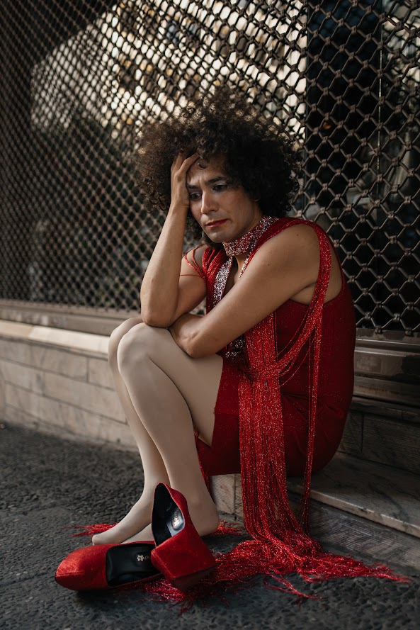 Υποδύεσαι την Άζζα, την αγέρωχη όσο και ευάλωτη πρωταγωνίστρια-drag queen του ομώνυμου θεατρικού έργου-μονολόγου του Βλάσση Χρυσικόπουλου, ενός κειμένου φαινομενικά εξαιρετικά προσωπικού.